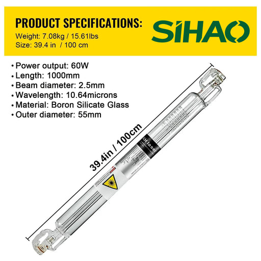SIHAO CO2 Laser Tube 40W-150W (700-1830mm Length) 80mm Glass Diameter Laser Engraving/Cutting Machine Laser Cutter Parts